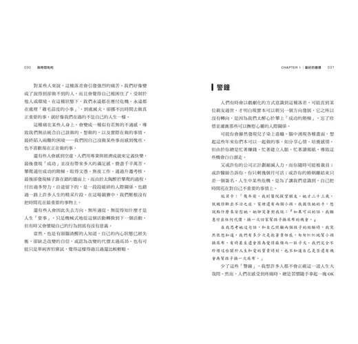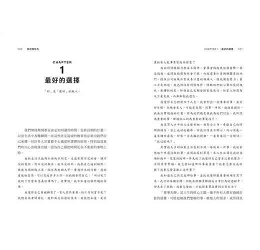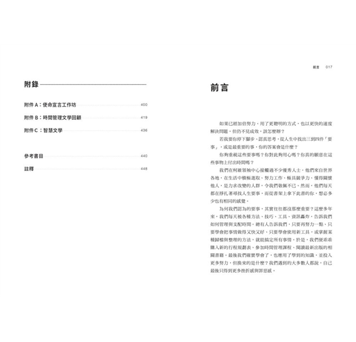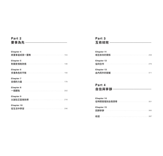 你可以將閱讀此書看成是一段內省的過程;你可以頻繁闔上書本,傾聽來自內心的聲音。在經歷深度自我認知的過程後,一定會有所改變——你看待世界的方式、看待人際關係的方式、看待時間的方式,甚至看待自己的方式,都會改變。我們堅信本書可以賦權於人,並弭平你內心的落差,從此你的時間將會運用在重要的事物上。