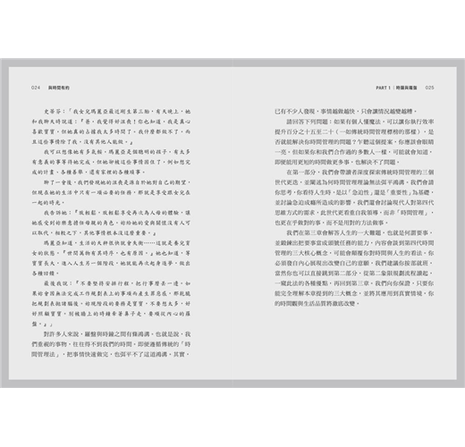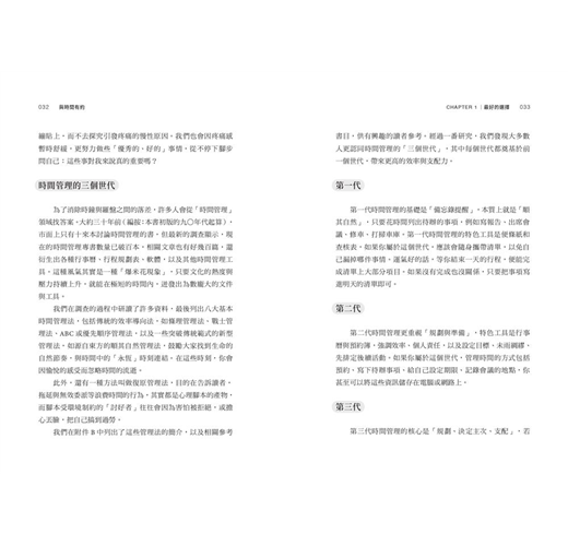 我們每天被各種方法、技巧、工具、資訊轟炸,告訴我們如何管理與支配時間。總有人告訴我們,只要再努力一點、學會使用新工具、把事情做得又快又好,或掌握某種歸檔與整理的方法,就能搞定所有事情。於是,我們便乖乖購入新的行程規劃表、參加時間管理課程、閱讀最新出版的相關書籍。我們確實學會也應用了學到的知識,並投入更多努力,最後只得到更多挫折感與罪惡感。