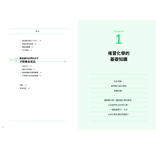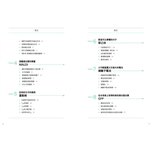 Chapter 2~9是本書的主幹,講解諾貝爾化學獎的主題。我們將介紹從古代到現代,那些拿到諾貝爾化學獎的革命性發現。