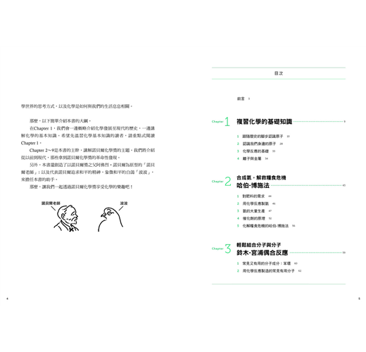 在Chapter 1,我們會一邊概略介紹化學發展至現代的歷史,一邊講解化學的基本知識。希望先溫習化學基本常識的讀者,請重點閱讀Chapter 1。