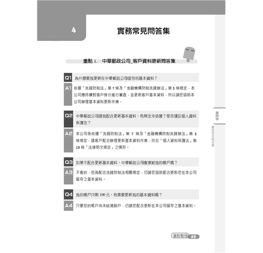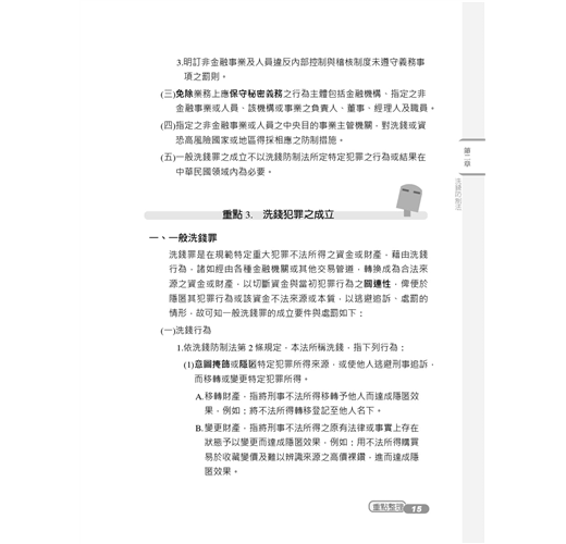 洗錢防制法是郵局招考當中,這幾年才新增的考科。而據我們觀察,這一科通常並不會出現過於艱深的題目,因此本書著重於基礎觀念的養成,涵蓋三大亮點: