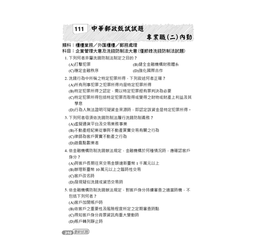這本《洗錢防制法大意》適用於中華郵政職階人員甄試專業職(二)內勤「櫃台業務、外匯櫃台、郵務處理」類科。