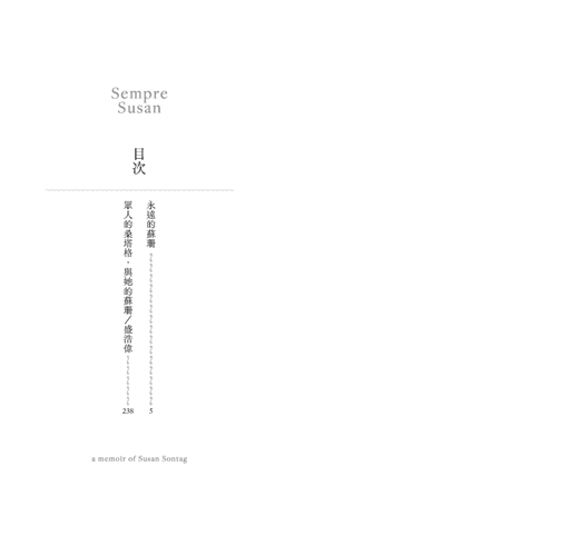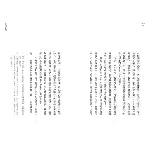 ★ 哭有時,笑有時,哀悼有時。追憶蘇珊・桑塔格,也似如她本身一樣,無法一言以蔽之,縱使這本小書只是由短短兩年的時光切片所構成,卻依舊反射出萬千形象——那是她思想與論著之外,或許可以稱之為「心」的東西。