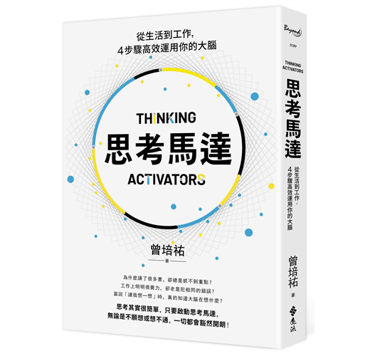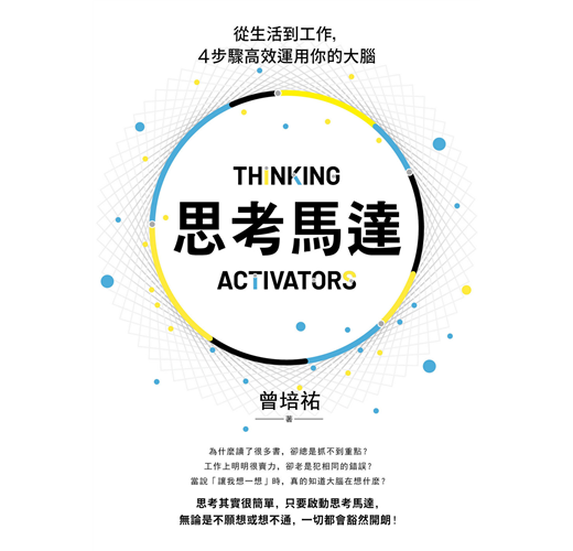 笛卡爾說:「我思故我在。」這句話讓我們知道「思考」的重要。「注意力設計師」曾培祐老師進一步在本書中提出「思考馬達」四個步驟,包括「提問」、「搜尋」、「結論」、「輸出」,利用這把思考的鑰匙,全面啟動生活思考,透過思考生活的關鍵,讓我們提高工作的效率,強化人際的溝通。