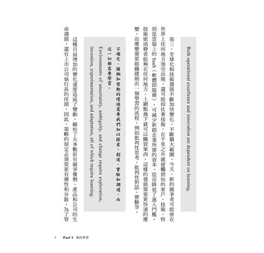 ◆ 因為,個人及組織必須不斷改進,才有高成效的卓越營運;必須持續探索和實驗,才有創新與成長。而這些,都仰賴學習。