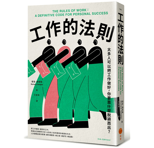 另外,觀察一段時間後,我漸漸地發現看什麼報紙也很重要,以及你用什麼筆、寫的內容、你和同事說話的方式、會議上你說了什麼……,其實就是你所做的每件事都會被評價、評估、歸類,因此僅能做好分內工作真的不夠。如果你想更進一步,就必須用「對的方式」看待所有事情,而《工作的法則》就是在創造這個方式。當然,你還是必須把做好工作放在第一位,但是太多人可以把工作做好,所以你還需要其他方法:如何脫穎而出?是什麼讓你成為合適的升職候選人?造成差異的到底是什麼?