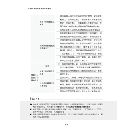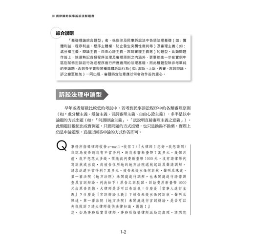 本書就所收錄的題目,筆者係以可以實際在考場上寫得出來的答案為擬答目標。各個題目的擬答,都是用慣電腦、都快忘記怎麼用手寫字的筆者,實際於限定的時間內、在真正的模擬答案卷上、沒參考法條以外的資料,用藍色或黑色的鋼珠筆及原子筆一字一句寫出來的,雖然稱不上是血淚之作,但也是右手肌腱的深刻磨練。