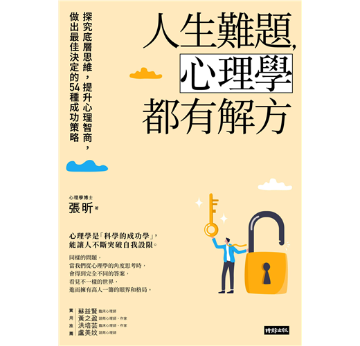 本書作者張昕是北大名師,研究心理學近二十年,擅長把晦澀難懂的心理學知識,以通俗易懂的方式舉例說明。書中深度拆解五十四個常見的人生難題,讓人在認識自己、洞悉人心、人際關係、自我發展等各方面,都能找到高效率的解決辦法。