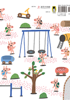 在本書中,四散在幼兒園裡的許多小豬們熱鬧非凡,他們跌倒、打架、歡笑著,盪著輪胎鞦韆、吊著單槓和玩跳箱,光是看著小豬們在遊樂場裡精力充沛的玩耍就非常有趣。櫻花花瓣下,小豬們背著五顏六色書包的場景讓人眼花繚亂,不禁想起孩子們和朋友們玩在一起的溫馨畫面。讓我也開始回想我在幼兒園裡的生活,這是一本能勾起每個人童年回憶的圖畫書。──大和田佳世(日本繪本Navi專欄作家)