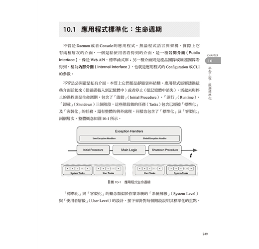 應用程式都有兩種層次介面,一是給使用者的公開介面,如Web API、標準函式庫;另一種是團隊看到的內部介面,如Config、CLI,只有標準化才能產生效率。