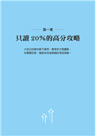 《只讀20%的高分應考術》是一本打造超強學習的勝經,若能以熱情與努力實踐書中的讀書策略,相信讀者必然會看見學習的奇蹟。