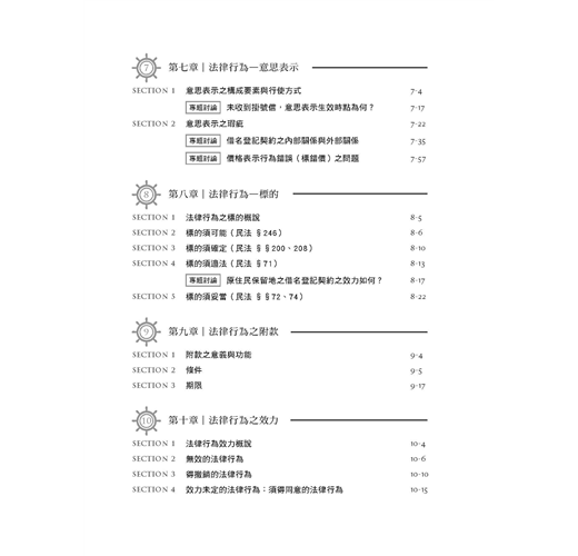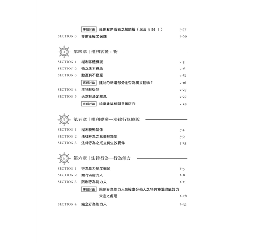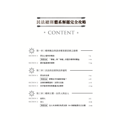 本書對於重要時事或是較為深入的議題,會以專題討論的方式,讓讀者對於民法的深入議題不再恐懼,帶你更上層樓,完全攻略民法總則。