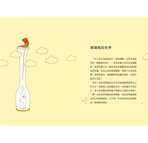 藉由一篇篇細膩真切的心情記事,搭配意象獨特的插畫,