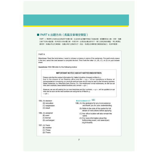 .這種類型的考題,每次考試都會有新的字彙登場,考生必須不斷熟悉新的單字。
