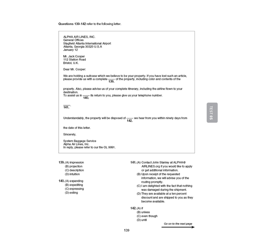 .以文法與字彙為基礎,完成包含空格的不完整文章,所以,背好單字文法是很重要的。