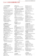 13. 附錄新增「COVID-19與防疫相關詞彙及用語」,分單元如下:1.病名及病毒相關詞彙,2.防護器具用品,3.醫療護理,4.篩檢,5.病例類型,6.傳播感染型態,7.疫情描述,8.病理症狀,9.防疫控管,10.疫後經濟,11.其他相關詞彙。