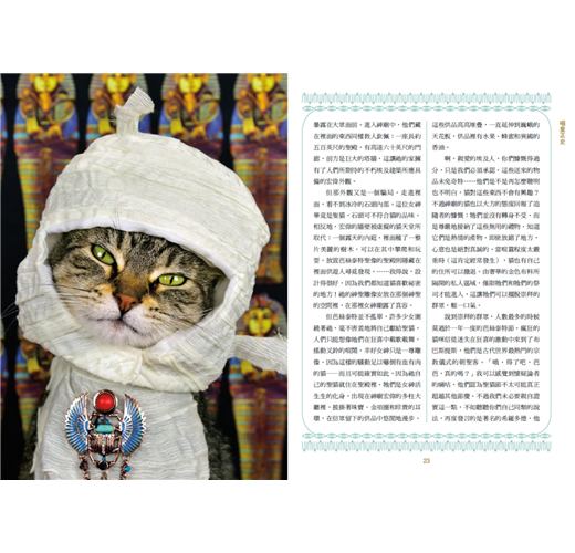 ★史料豐富,前所未見。全書搭配虎斑貓芭芭近百幅Cosplay出演各種歷史人物:埃及豔后、木乃伊、拿破崙、腓尼基水手、加勒比海盜、樞機主教、維多利亞女王、西部牛仔……讓眾貓奴目眩神迷,心悅臣服!