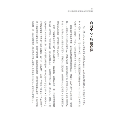在本書抽絲剝繭,解析心理病態的特質與行為