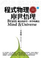 王執行長撰寫《程式物理到塵世悟理》一書,也是從宇宙大乾坤談到人體的小乾坤,再從身體的生理分析到內在的心理,將澈悟之事理結合物理,貫通法理、道理與心理。他是腦神經科學的專家,因此,對照現代腦神經與二千多年前的佛經,融合醫學、科學與佛學的義理。在闡述程式物理時,有如寒潭皎月,澄淨清澈;在紅塵俗世體悟的道理,則是脫塵出世,好比靜夜鐘聲,悠揚迴盪。
