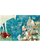 而伊朗裔繪者娜希德.卡茲米的繪畫太過精彩。她筆下結合多種媒材,包含鉛筆、色鉛筆、乾粉彩、炭筆、拼貼,複合交疊出如夢似幻的溫柔氤氳畫面,每一個跨頁都細細埋藏了許多細節和肌理質感,同時賦予城市和荒野中的場景獨具一格的繁複色彩和視角。