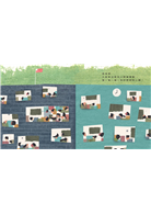 作者巧妙運用油性粉彩與油性色鉛筆,創造不同質地、顏色與形狀的紙做拼貼。其豐富度與色彩令人目光為之一亮,每一個小小人物彷彿都在說話呢!