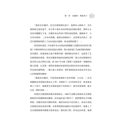 在編輯和剪輯的過程中,從後來保存在美國歐柏林和多家神學院和大學的檔案中可以找到的照片看,安麗莎僅有的頭像非常模糊。艾沃德牧師年輕、堅毅,他的女兒們在照片中,無論是表情和所穿的衣服都樸素而美麗。看著施瑋解讀的採訪素材,我回憶著2012 年在她家中做客時的印象——她既是高產作家,也是一個對孩子和教育擁有負擔的好姐妹。我們當時甚至談及將我的女兒放在她家裡,去洛杉磯讀完高中的計劃。作為關注近代宣教歷史的作家和學者,這些回憶和講述不可能不動感情。