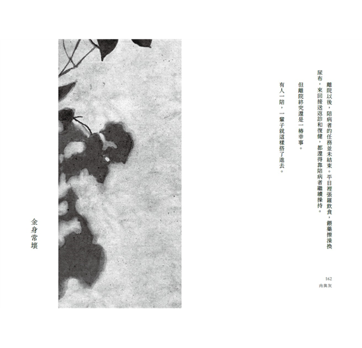 我專心聽,不糾正,也不多作辯駁。我明白,疾病與隱喻兩者交纏極深,甚至,隱喻也會傳染,需對症下藥。但隱喻的藥方不假外求,我只能等待,給彼此一點時間,好讓他自己去一一識破,剝離,除魅。