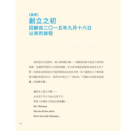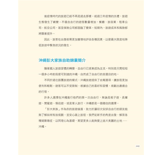 彭大說:「這本書解決所有沖繩旅行疑問,從機票和住宿到颱風應對,一應俱全!」