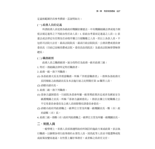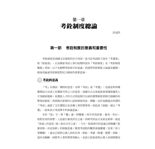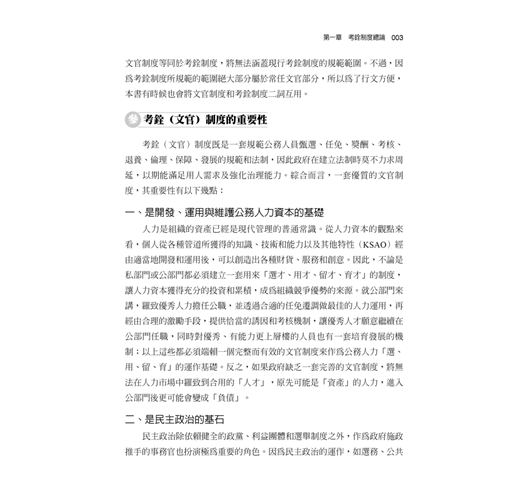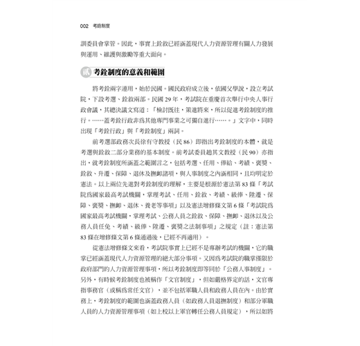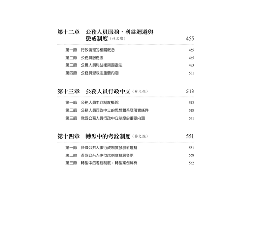 第二,為因應數位治理及數位轉型的時代趨勢,作者林文燦教授特別在〈第十四章轉型中的考銓制度〉增加「伍、轉型中人事行政業務資訊化:人事行政資訊系統的建構與應用」一節,將人事行政總處及銓敘部二個中央人事主管機關推動考銓、人事業務資訊化歷程予以分享。