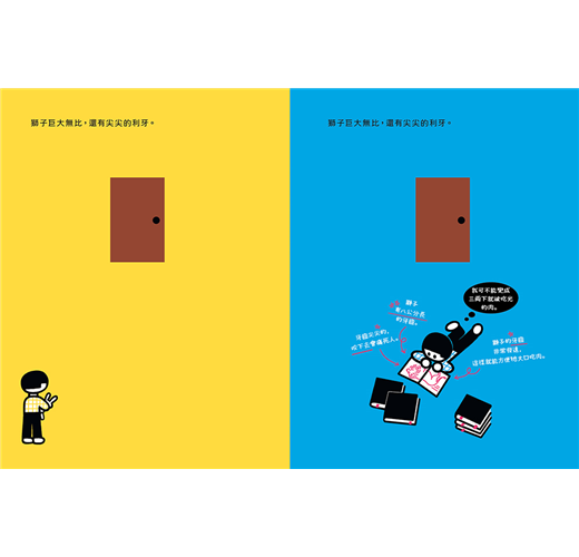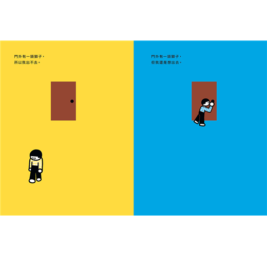 ★我十分推薦這本書。其實,門外的世界裡除了獅子之外還有很多可怕的東西。我和孩子共讀時討論到,如果你充滿了好奇心,卻因為恐懼而不敢邁出一步,你就看不到世界的美好。