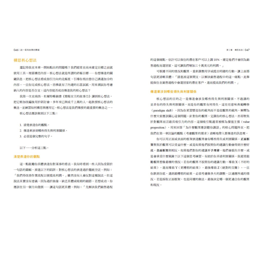 推薦序 一場有故事性又符合商業邏輯的好表達 孫治華 ‧這是繼《Google必修的圖表簡報術》之後,應該要暢銷的商業表達書籍了! 因為這是同一位作者的寫的,但是風格與商業的延伸性更完整了,《Google必修的圖表簡報術》這門課我在商周已經講了六年,我負責的部分是如何用圖表說故事的部分,我常笑稱,真正要學講故事,很多人看了N本書都學不會,這本書加上前言也才三個章節在講故事,所以我的部分就是將說故事中該學的再補充上去,但是現在作者把這一段也補上去了,而且閱讀起來簡單、務實、有流程、有表單。 ‧他不僅只是說故事,而是有充分的商業考量為基礎 我覺得這本書很有意思的點是,雖然作者說這一本書比較適合一些演講的情境,但是我卻發現他相當的務實,在第一章的〈核心想法表單〉中,其實就已經是一個非常細膩的說服策略的規畫,而且還有很多自問自答的問答集可以讓妳對說服策略可以有更完整的思考面向,像是: ‧他們關心什麼?是什麼給他們動力? ‧是什麼讓他們感到害怕,或者讓他們夜裡失眠? ‧是什麼激勵他們?是什麼導致他們想要付諸行動? ‧是什麼阻止他們行動或讓他們猶豫不決? ‧他們為什麼會支持你? ‧他們為什麼會拒絕你? 我覺得這些問題真的是很適合商業表達經驗比較少的朋友去思考的方向,可以提升講者對於報告主題更深一層的認識。 ‧對說故事的情境也有充分的理解 很多的作者會把自己分享的內容當作是一劑萬靈丹,但是怎麼可能?像是你為什麼銷售成績不佳?因為你不會商業簡報,為什麼你團隊領導不好?因為你不會商業簡報,為什麼你的主管不青睞你?因為你不會商業簡報,這是一種窄化、狹隘的思維。這本書也主動地跟大家分享什麼樣的情境是不適合講故事的,像是那種有固定格式、公司有訂定架構的簡報不合適,像是「觀察、研究主題、假設、實驗、分析和結論」的這種報告 但是像我們這種報告的老手就知道,這樣的報告本身比較難成為一個故事,甚至硬要講成一個故事還會遇到企業文化衝擊(沒必要跟文化對撞),但是我們會讓自己的表達有故事性,或是變成我們在觀察中做一個故事開場(小單元)勾起聽眾的注意力,或是在結論時說一個未來的影響與願景,說明這報告之後的應用面向甚至是未來的市場價值,這依舊是一個故事應用的場景。而這本書則會有簡易版的故事弧會帶著大家去思考自己的故事架構。 ‧從平鋪直敘的思維走到故事設計,再變成一份商業簡報的全流程說明 這本書很實際的點就是在了解了這些故事的規畫之後,他還直接舉例與拆解該怎麼將這些便利貼變成一份簡報的細部分解說明,甚至已精細到選擇色調的部分!而重點是這本書也是我第一次看到有商業表達書籍接露了為什麼Google、臉書這些國際大廠公開在社群中的商業簡報是那麼具備(無講者的)閱讀性,就是因為他們懂得將描述性標題如「供應商分析」變成預示性標題如「改變供應商策略,降低成本,提升品質」,這看似簡單的修正卻是很多人簡報報告是否流暢的關鍵,在這本書中也有了很棒的著墨。 作者就是真的像要把你教會,從我一位職業講師的角度來說,這一本書就是一堂課程的濃縮啊!該有的高度策略與關鍵執行細節都寫在這本書了,還有豐富與真實的案例給你們做參考。 這一兩年我在企業內講《改變說服力的商業簡報術》的時候,總會在開場的時候問大家幾個問題:「假如,有一份曾經被人拒絕過的簡報,記住,是被人拒絕過的簡報,今天我們上了簡報課,我們把簡報做得更漂亮,我想問各位『這份簡報就會過關了嗎?』」這時候學員往往都搖搖頭,我往往會在追問「假如,有一份曾經被人拒絕過的簡報,假如我們把資料補充的更完整,我想問各位『這份簡報就會過關了嗎?』」學員都依舊搖搖頭 那漂亮的簡報沒有辦法幫我們解決瓶頸?資料豐富的簡報也沒有辦法幫我們解決瓶頸?那商業表達到底要學什麼? 現在,我們就來好好的閱讀這本書吧!這裡面會有各位想要的答案。一場有故事性又符合商業邏輯的好表達。 (本文作者為簡報實驗室創辦人)推薦序 讓你的聽眾都能「願意聽,能溝通,想行動!」 張忘形 當時受邀寫這本推薦時,我受寵若驚,我何德何能幫Google總監推薦她的簡報書啊。但也因為如此,希望透過我的一些文字,讓你知道為什麼應該要看這本書。 首先最重要的是簡報情境,我覺得簡報可以簡易區分成兩種。 第一種是上班時可能要面對的週報、月報和結案報告。我把這類的簡報統稱為資訊整理型的簡報,而如果你平常要做的簡報是這種,我必須老實說這本書可能不太適合你。 然而另一種簡報,是當你有機會站在台上,跟一群人闡述你的理想甚至產品時,你該讓聽眾跟著你的思維前進,甚至最後能夠行動或買單,我把這樣的簡報稱為「溝通型簡報」。 而這本書全部的內容,就是從溝通型的簡報出發。而他的獨到之處是,他不只講技巧,還能讓你從0到1的完整學習。 所謂從0到1,是因為簡報其實是一個很難的學問,主要是他可能需要對聽眾的觀察、對內容的思考、對視覺的美感、對表達的掌握、個人的魅力,以及臨場的反應。 畢竟沒有一個簡報者能樣樣精通,所以有些可能專注於視覺、有些專注於表達結構,而有些則是分享實戰經驗等等。就算都有提及,但很可能比較是一個一個的技巧,而不是全面的思考。 然而這本書除了對表達的語