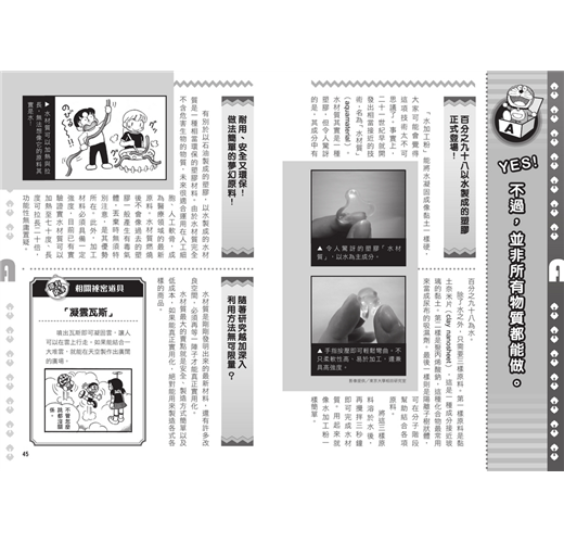 書中內容結合了科學百科,是極具教育性、趣味性的哆啦A夢作品,讓讀者可以從漫畫世界中了解到哆啦A夢漫畫所述說的科學相關知識,極適合中小學學生閱讀。