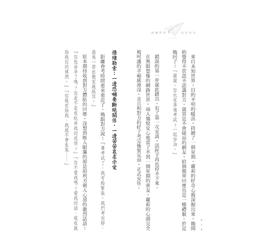 來自未知世界、目的不明的暖訊,持續了一個星期。蘿莉的好奇心被深掘出來,她開始覺得不管認不認識對方,就算是不會碰面的網友,給個簡單回應也是一種禮貌。於是她回了:「謝謝。你也在準備考試?一起加油。」