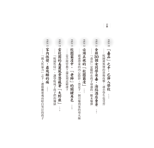 FILE 14 當校園的美麗風景潛藏著「大野狼」 179