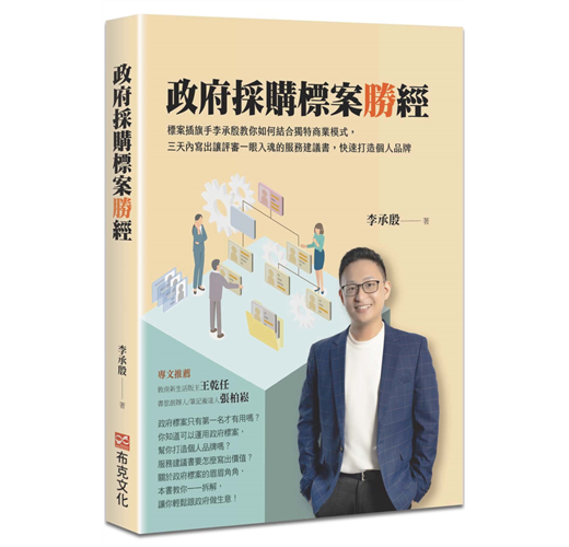 沒想到才過沒多久,承殷就傳來訊息告訴我,他準備要出書了,還無私地給我看了書稿。書中除了仔細介紹他投身標案代寫這一行的源起跟經歷,以及這幾年的所思所感所學,更是一步步帶領讀者,揭開了政府標案的神祕面紗,了解標案寫作的思考重點、切入點,乃至標案的架構還有製作細節,覺得很是有趣!
