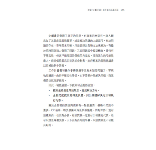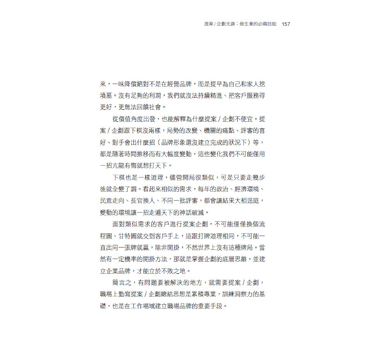但如果你認為這本書只是談標案撰寫,那就大錯特錯了,這本書其實是在談一個普通人,要如何經營自己的品牌,找到自己的熱情,並且用其來獲取收入,讓自己可以邁向更自由的人生。