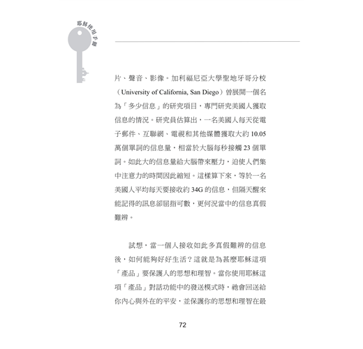本書作者無意把耶穌貶低為一種產品,只是當我們走在人生的長路上,生活周遭盡是奇異詭譎、令人目不暇給的誘惑映入眼簾時,唯有基督是獨一無二最好的產品!