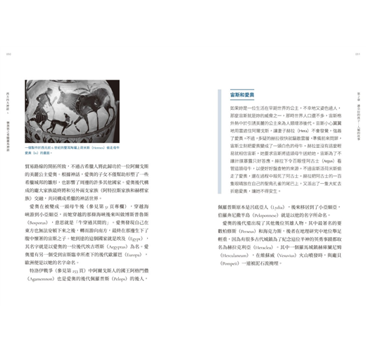 最後,這些神話影響是如此強大且深深嵌入西方意識,以至於它們從未真正退場。自文藝復興時代起,它們一直影響著無數的畫家、雕塑家、作曲家及作家,因此本書特別以專欄強調每則古代神話在後世的影響和流變。此外,儘管我們並未完全意識到,我們現在所使用的詞彙和處理的事物也和古代諸神有關。本書希望讓大家注意到當代生活出現與古代神話相關的許多細節──經常是在最出人意料的情況下──我希望這麼做,不僅能讓讀者更熟悉古典世界,同時也更瞭解現代世界。