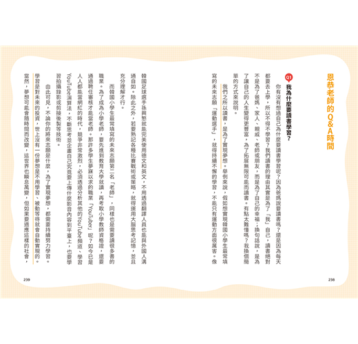 自從學會了如何自主學習後,藝徐日益進步,變得能夠接納新事物。原本對所有事情毫無野心的孩子,居然也開始想要積極準備考試,想要考到滿分。真心感謝老師透過這本書為學生解釋讀書的意義,幫助他們找到學習的動機與樂趣。——藝徐媽媽(韓國讀者)
