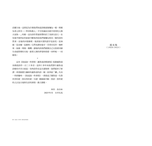 因此我們可以說這些情詩始終是在愛的交流、企圖溝通以及悲劇性的孤寂三者間生動地游離著。