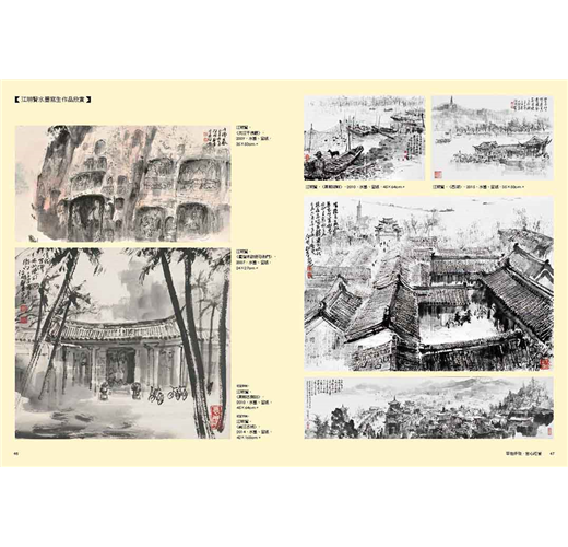 江明賢的水墨創作結合中西畫法,在現代的構圖、筆法之中,營造深富歷史詩性的人文氛圍。不論是運用在臺灣的山川鄉野、古蹟寺廟,或是西洋城市的古老和繁榮,以及中國大陸的名勝風景、西北邊域,他並非純粹描繪自然形象,而是具有更多創作生發與筆墨的靈活運用,散發一種蒼茫、古樸,卻又獨特、空靈的畫面特質。他將東方與西方、水墨與油彩、素描與筆墨等技法熔於一爐,既文人又庶民,既抽象又寫實,江明賢儼然已是20、21世紀之交,東方水墨藝術發展史上無可取代的巨匠。