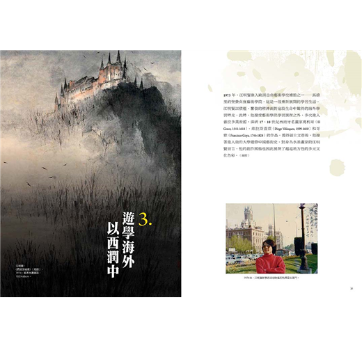 1973年江明賢負笈西班牙,進入馬德里的聖費南度藝術學院就讀,獲碩士學位。同時走訪歐洲各大博物館,親炙古典大師的不朽名作,獲益良多。之後轉往紐約大學研修中國美術史,創作也隨之展現超越地方性的多元文化色彩。