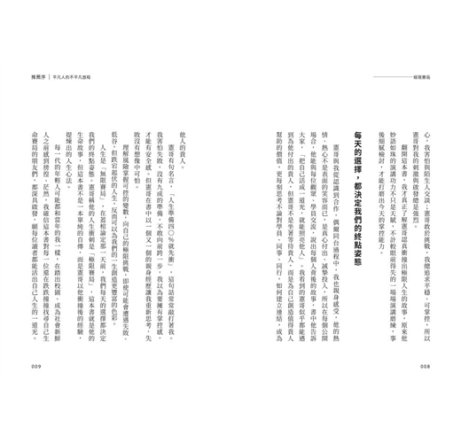 這本書不是一本單純的自傳,更是憲哥衝撞生命後提煉出的寶貴心法,對每一位還在跌跌撞撞找尋自己生命賽局的朋友們,都深具啟發。