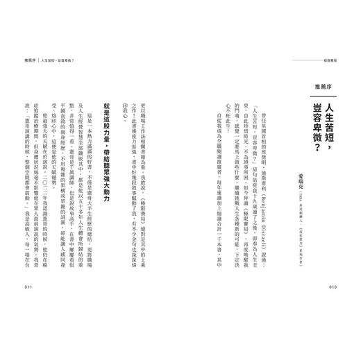 當邁向人生巔峰時,他看見別人的需要;在面對失去時,他則向內探尋自己的內心,帶領讀者重新尋找人生的意義與解答。