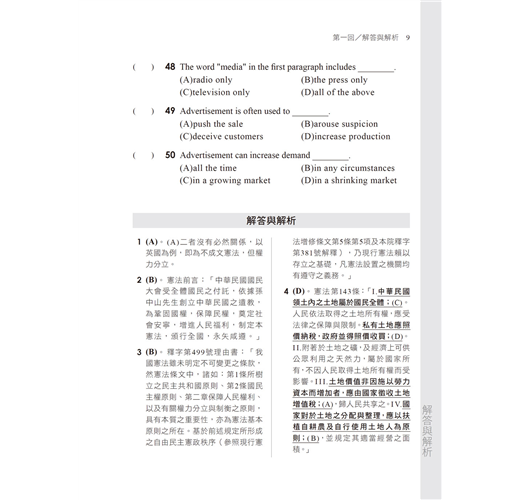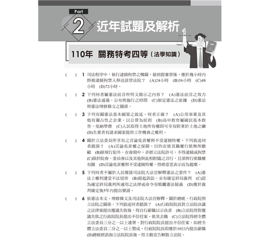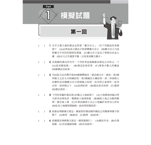 本書全方位彙整歷年國家考試試題,並配合法規條文與大法官解釋增修,將試題及解答予以必要調整,使測驗能發揮最大效益。難題均附解析或法規索引,使你「從做中學,以戰養戰」,不僅能了解近年考試趨勢,也更能明白出題考點所在,在有限的時間內熟悉考情,實地演練,戰力倍增!