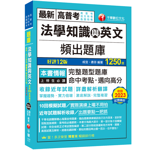 千華名師團隊精心蒐羅金榜題庫,藉由題庫演練確認自己功力深淺與尚嫌不足的地方,並可針對弱點加強補救,是考前必備第一要務。本書將必考重點精華濃縮整理,透過題庫釐清法學、英文概念,並能將重要法條、單字反覆記憶,打通思路,極為適合考前強化記憶、零碎時間隨時進補專用!