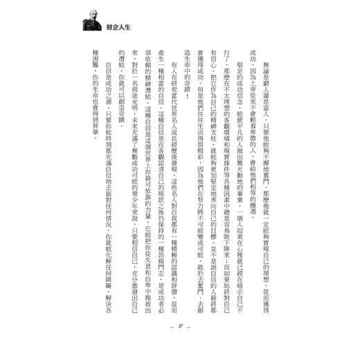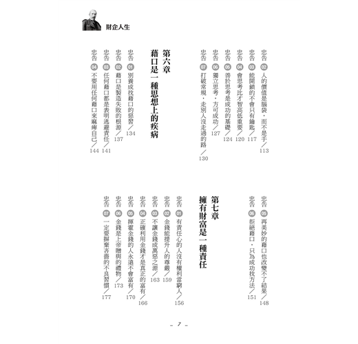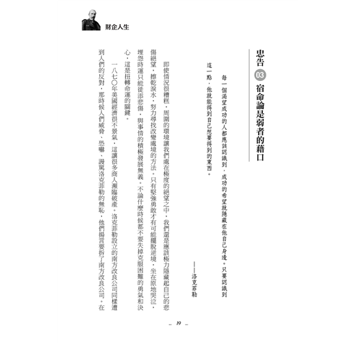 這本書教會我們正確地看待命運,微笑著迎接苦難,智慧地與人相處,積極貢獻社會。讀此書,你將體會到這位活了近百歲的商業鉅子身上散發出的無與倫比的智慧光芒。