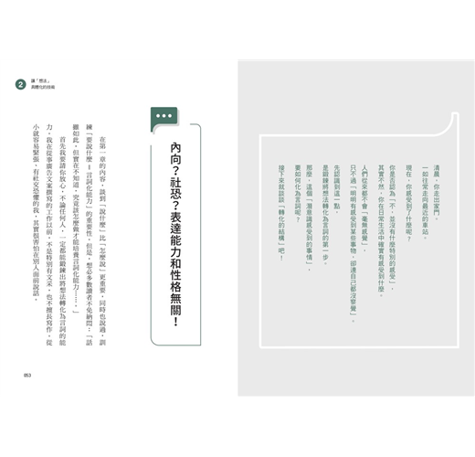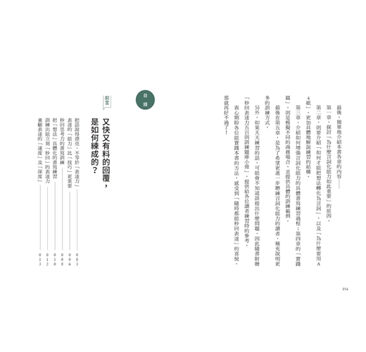 最後在第五章,是為了希望更進一步磨練言詞化能力的讀者,補充說明更多的訓練方式。