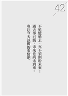 42 不追憶過去,亦不須期盼未來;過去事已滅,未來也尚未到來。專注今天該做的事情吧