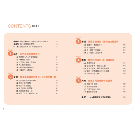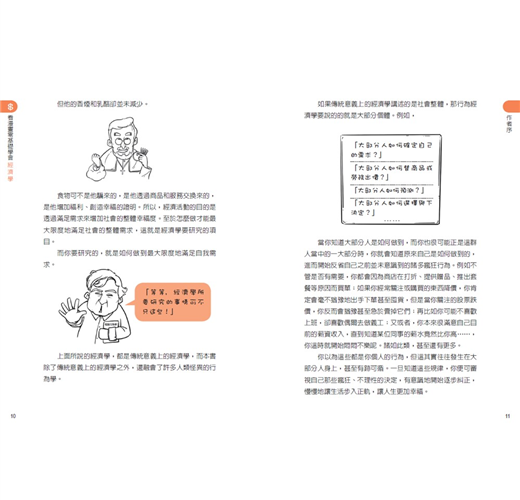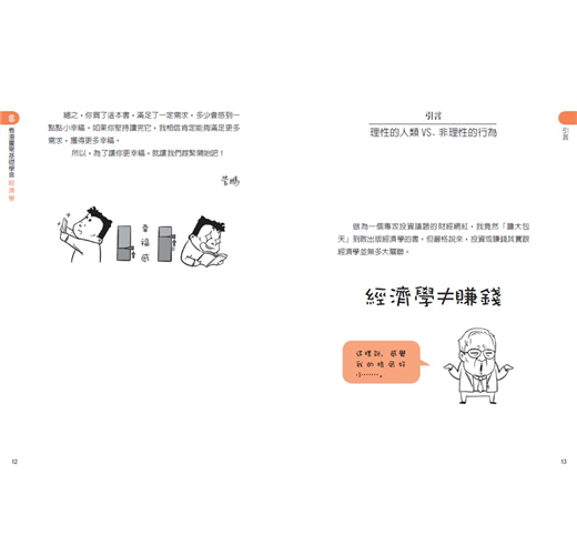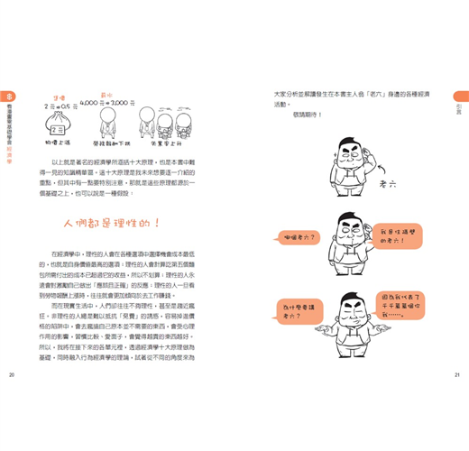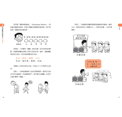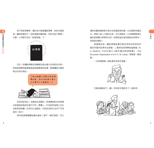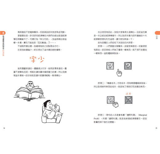此外,本書充分利用通俗易懂的另類描述手法,為讀者們解釋經濟學中常用的專業名詞,讓大眾對上述這些觀念擁有全新的理解。